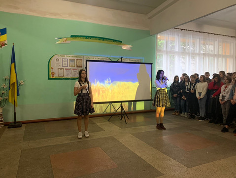 Хвилиною мовчання вшанували загиблих на війні, згадали про випускника школи Володимира Бражника, який загинув під Іловайськом у серпні 2014 року, та поклали квіти до меморіальної дошки учні 8-11 класів під час мітингу до Дня захисника України. Під час заходу учні 11-А класу згадали про історію визвольної боротьби українського народу, побажали здоров’я всім воїнам, які зараз знаходяться на передовій.