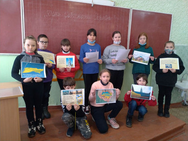 Учні початкової ланки взяли участь у конкурсі малюнків «Моя рідна Україна», учні 8-А класу випустили святкову стіннівку.