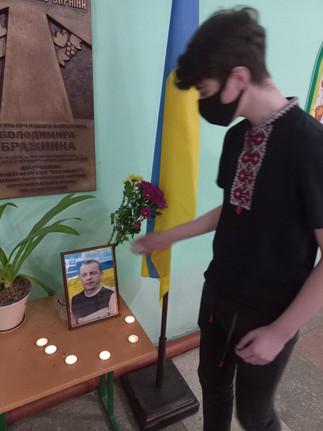 У вестибюлі школи пройшло урочисте покладання квітів до меморіальної дошки, встановленої на честь випускника школи В.Бражника. На заході були присутні учні 9-х-11-х класів, до всіх присутніх з привітальним словом звернулась директор школи О.В.Грипась та наголосила, що це національне свято є важливим для жителів нашої країни. Воно було засноване, щоб українці пам'ятали, що їхня країна - вільна і незалежна держава.